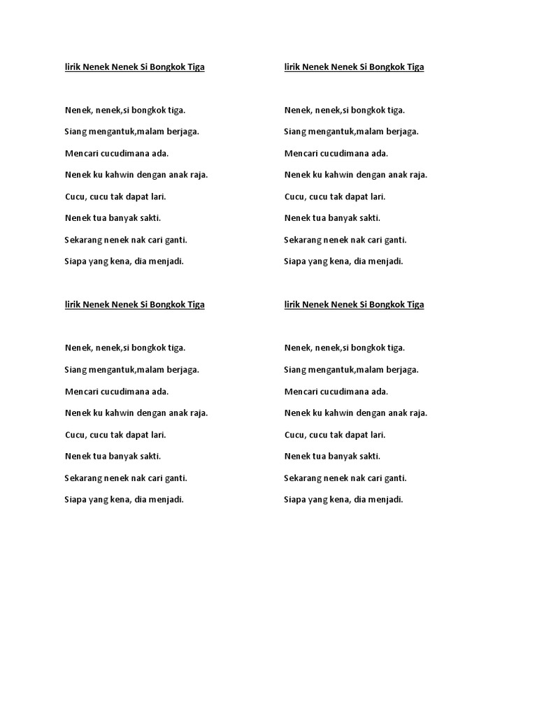 Lirik Nenek Nenek Si Bongkok Tiga Pdf